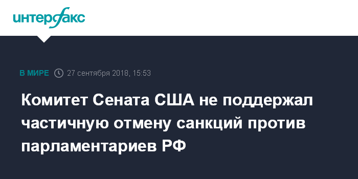 Комитет Сената США не поддержал частичную отмену санкций против парламентариев РФ