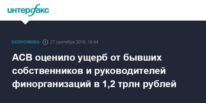 "По оценкам Агентства, действия руководителей и собственников финансовых организаций повлекли за собой причинение ущерба финансовым организациям и их кредиторам в размере свыше 1,2 трлн рублей", - говорится в релизе АСВ.