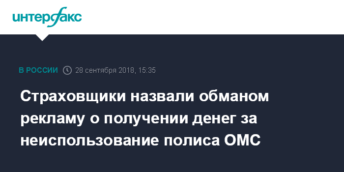 Страховщики назвали обманом рекламу о получении денег за неиспользование полиса ОМС