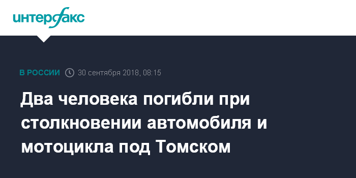 Два человека погибли при столкновении автомобиля и мотоцикла под Томском