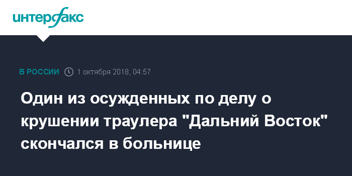 Один из осужденных по делу о крушении траулера "Дальний Восток" скончался в больнице