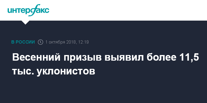 "В ходе прошедшего весеннего призыва к административной ответственности привлечены свыше 11,5 тысячи граждан, большинство из них - за неявку по повестке без уважительных причин, уклонение от прохождения медицинского освидетельствования ", - сказал он на пресс-конференции об итогах весеннего призыва и задачах на осенний призыв 2018 года.