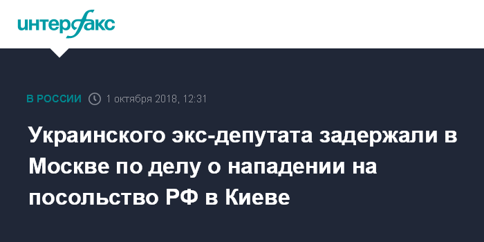 Украинского экс-депутата задержали в Москве по делу о нападении на посольство РФ в Киеве
