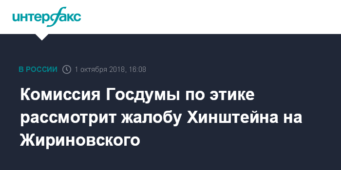 Ранее Хинштейн писал в твиттере, что подал в комиссию жалобу на Жириновского в связи с оскорблениями в свой адрес в ходе одной из телепрограмм.