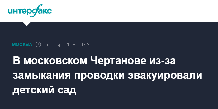 Москва. 2 октября. INTERFAX.RU - Около ста детей эвакуировано из здания детского сада на юге Москвы после замыкания электропроводки, сообщил "Интерфаксу" осведомлённый источник.