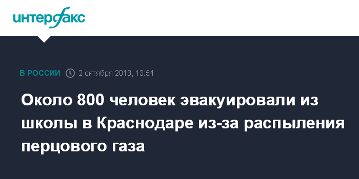 "Около 11:00 по московскому времени поступило сообщение из средней общеобразовательной школы №35 в Центральном округе Краснодара о том, что в одном из помещений распылено неизвестное вещество, предположительно, перцовый газ из баллончика. На место незамедлительно выехали сотрудники оперативных служб и медики", - сказал сотрудник пресс-службы.