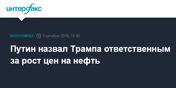 Москва. 3 октября. INTERFAX.RU - Президент РФ Владимир Путин заявил в среду, что посоветовал бы президенту США Дональду Трампу "посмотреться в зеркало" в поисках виновника роста цен на нефть.