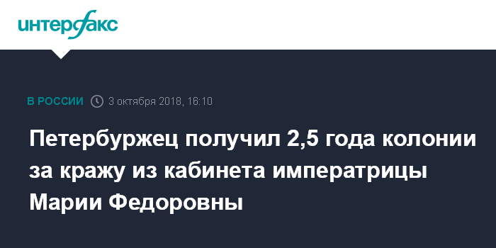 Петербуржец получил 2,5 года колонии за кражу из кабинета императрицы Марии Федоровны