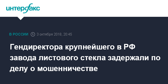 Гендиректора крупнейшего в РФ завода листового стекла задержали по делу о мошенничестве