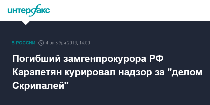 Погибший замгенпрокурора РФ Карапетян курировал надзор за "делом Скрипалей"