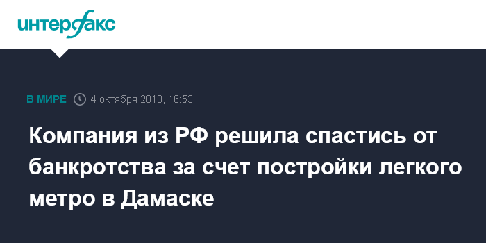 Компания из РФ решила спастись от банкротства за счет постройки легкого метро в Дамаске