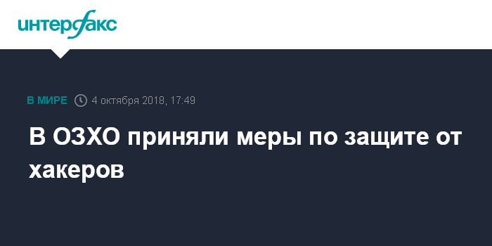 "ОЗХО очень серьезно относится в теме обеспечения безопасности своих сетей. С начала 2018 года Организация наблюдает учащение деятельности, связанной с кибератаками. Гендиректор проинформировал страны-члены ОЗХО об этой деятельности, а Технический секретариат ОЗХО принял меры, нацеленные на то, чтобы минимизировать воздействие (хакеров - ИФ)", - отмечается в заявлении.