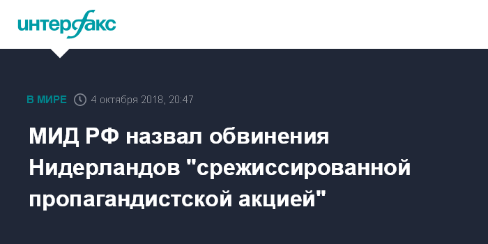 МИД РФ назвал обвинения Нидерландов "срежиссированной пропагандистской акцией"