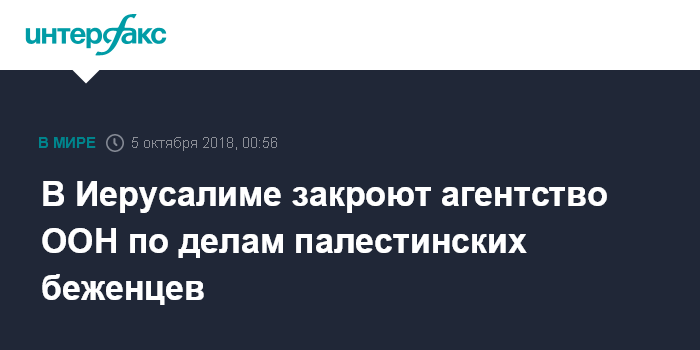 В Иерусалиме закроют агентство ООН по делам палестинских беженцев