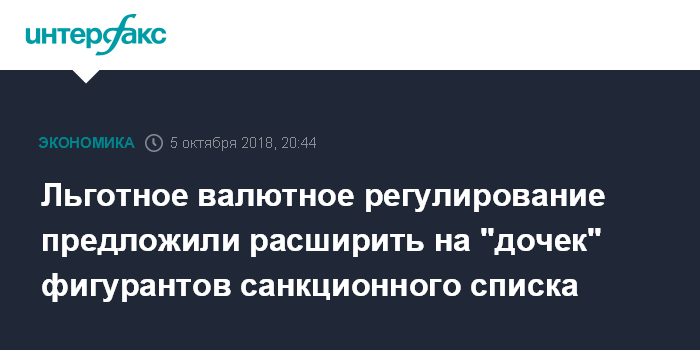Льготное валютное регулирование предложили расширить на "дочек" фигурантов санкционного списка