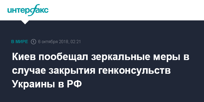 Киев пообещал зеркальные меры в случае закрытия генконсульств Украины в РФ