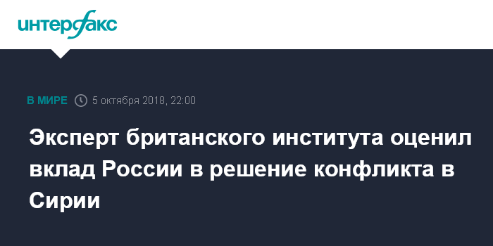 Эксперт британского института оценил вклад России в решение конфликта в Сирии