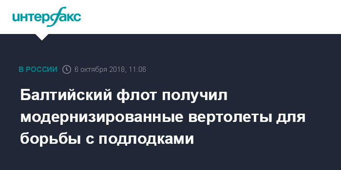 Москва. 6 октября. INTERFAX.RU - Балтийский флот получил 5 модернизированных вертолетов Ка-27, сообщили в пресс-службе флота.