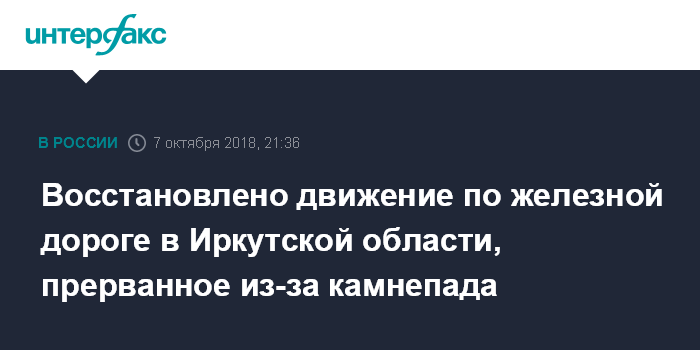 Восстановлено движение по железной дороге в Иркутской области, прерванное из-за камнепада