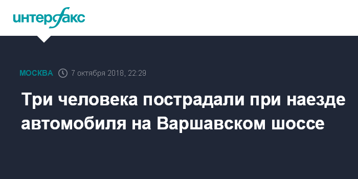 "В 21:14 в районе Варшавского шоссе, 87 мультивэн "Фольксваген" совершил наезд на парапет подземного перехода", - сказал сотрудник пресс-службы, добавив, что пострадали три человека, двое детей и взрослый, их жизням ничего не угрожает.