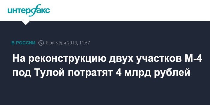 На реконструкцию двух участков М-4 под Тулой потратят 4 млрд рублей