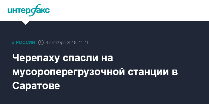 Москва. 8 октября. INTERFAX.RU - Сотрудники мусороперегрузочной станции (МПС) в поселке Елшанка города Саратова обнаружили в общем потоке отходов живую черепаху, сообщает пресс-служба филиала АО "Управление отходами" в понедельник.