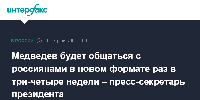 Медведев будет общаться с россиянами в новом формате раз в три-четыре недели – пресс-секретарь президента
