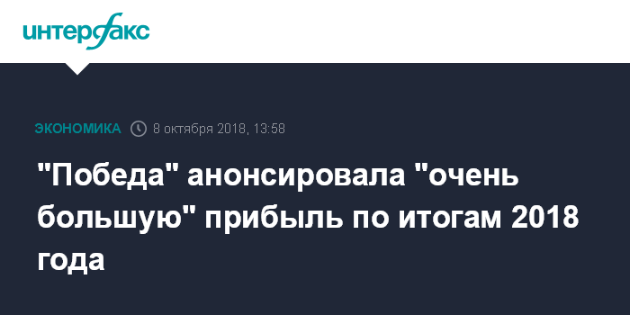 "У нас в "Победе" все хорошо. Мы не можем пока огласить финансовые результаты за 2018 г., но можно точно сказать, что у нас будет очень большая прибыль", - сказал он.