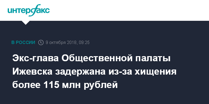 Экс-глава Общественной палаты Ижевска задержана из-за хищения более 115 млн рублей