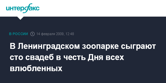 Санкт-Петербург. 14 февраля. INTERFAX.RU - В День святого Валентина в Ленинградском зоопарке отметят сто свадеб животных.