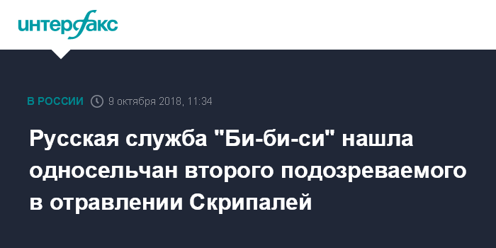 Москва. 9 октября. INTERFAX.RU - Русская служба "Би-би-си" утверждает, что отыскала односельчан Александра Мишкина, которого СМИ называют офицером ГРУ Александром Петровым, подозреваемым в Великобритании в отравлении экс-полковника ГРУ Сергея Скрипаля и его дочери Юлии.