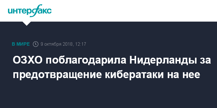 На этой неделе власти Нидерландов объявили, что предотвратили хакерскую атаку на ОЗХО в апреле 2018 года. По утверждению следователей, за атакой стоят сотрудники ГРУ.