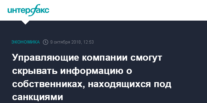 Москва. 9 октября. INTERFAX.RU - Правительство РФ разрешило управляющим компаниям не раскрывать информацию о составе акционеров, в том числе о контролирующих лицах, если на тех наложены санкции иностранных государств, следует из постановления, опубликованного на портале правовой информации.