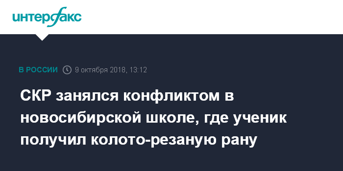 Москва. 9 октября. INTERFAX.RU - Следственные органы СКР по Новосибирской области проводят проверку по факту получения колото-резаной раны учеником школы №202 в Новосибирске во вторник. Об этом сообщил агентству "Интерфакс" старший помощник руководителя СУ СКР по региону Михаил Третьяков.