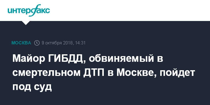 Москва. 9 октября. INTERFAX.RU - Бывший заместитель командира батальона ГИБДД Северного административного округа (САО) Москвы Алексей Уваркин, сбивший насмерть пешехода и скрывшийся с места ДТП, предстанет перед судом.