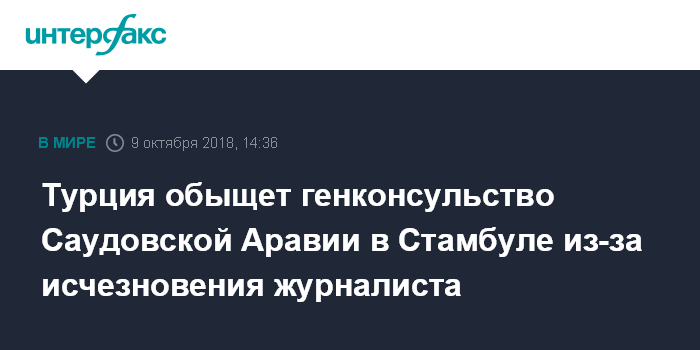 Накануне турецкий лидер Реджеп Тайип Эрдоган заявил, что власти Саудовской Аравии должны предоставить информацию о том, что случилось с саудовским журналистом. Он отметил, что турецкая сторона пока не получила удовлетворительной информации на этот счет от консульства. Президент подчеркнул, что "гуманитарный и политический долг" Турции - разобраться в этом деле.