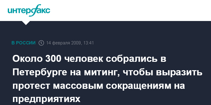 Санкт-Петербург. 14 февраля. INTERFAX.RU - В Петербурге в субботу прошел митинг представителей профсоюзных организаций, собравший около 300 человек.