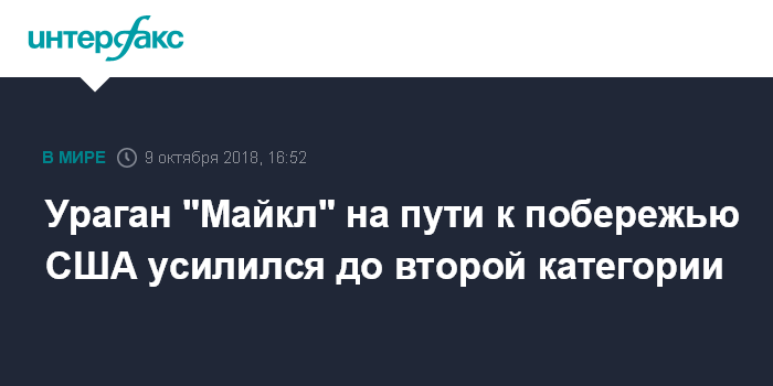"Ураган "Майкл" усилился до второй категории мощности; средняя скорость ветра составляет 160 км/час, а (максимальная - ИФ) достигает 185 км/ч", - говорится в сообщении центра.