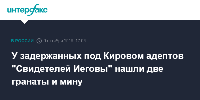 У задержанных под Кировом адептов "Свидетелей Иеговы" нашли две гранаты и мину