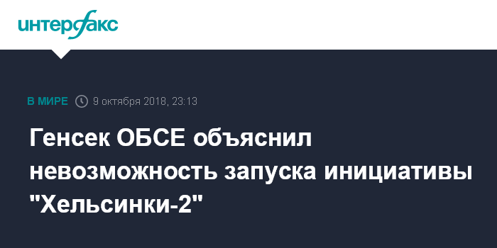 Генсек ОБСЕ объяснил невозможность запуска инициативы "Хельсинки-2"