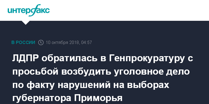 ЛДПР обратилась в Генпрокуратуру с просьбой возбудить уголовное дело по факту нарушений на выборах губернатора Приморья