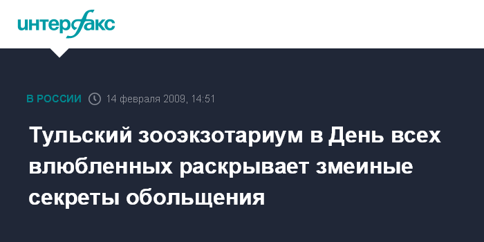 Тула. 14 февраля. INTERFAX.RU - Крупнейший в России зоопарк рептилий - Тульский областной зооэкзотариум - в День всех влюбленных организовал праздник "Секреты обольщения от змей".