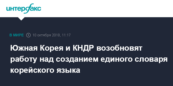 Ожидается, что позже в октябре в офисе связи корейских государств в северокорейском городе Кэсон состоятся переговоры на высоком уровне, на которых, в частности, будут обсуждаться возможности встречи филологов из КНДР и Южной Кореи. Их встречи могут быть организованы в конце ноября - начале декабря 2018 года, на них специалисты обсудят проект по созданию единого словаря.