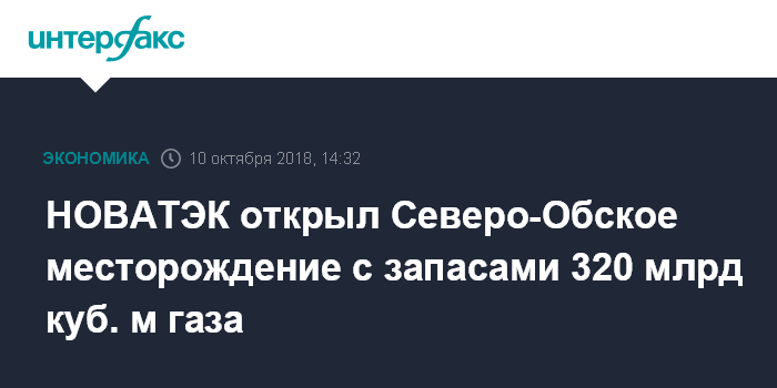 Москва. 10 октября. INTERFAX.RU - Дочерняя компания "НОВАТЭКа", ООО "Арктик СПГ 3", открыла на Северо-Обском месторождении в мелководье Обской губы месторождение с доказанными запасами (по российской классификации) в более чем 320 млрд куб. м и ресурсами в более чем 900 млрд куб. м газа, сообщил "НОВАТЭК".