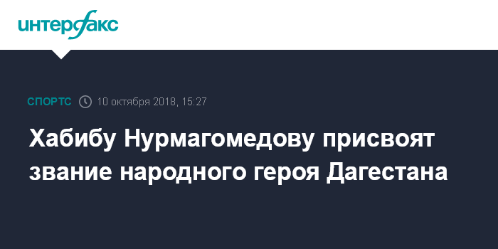 "За особый вклад в развитие отечественного спорта и завоевание пояса чемпиона UFC Хабиб Абдулманапович Нурмагомедов представлен к званию "Народный герой Дагестана". Решение уже принято. Ему в ближайшее время будет вручена золотая звезда с орлом", - сказал Абдулжелилов.