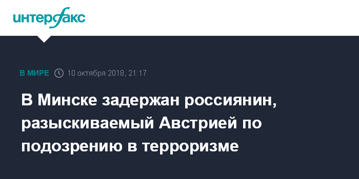 В Минске задержан россиянин, разыскиваемый Австрией по подозрению в терроризме