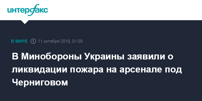 Москва. 11 октября. INTERFAX.RU - Пожар на территории 6-го арсенала вооруженных сил Украины в Черниговской области ликвидирован в полном объеме, сообщил начальник управления коммуникаций и печати министерства обороны Украины полковник Алексей Чернобай.