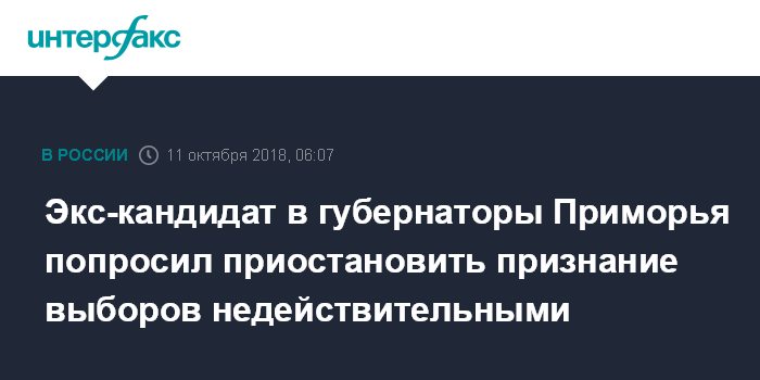 Экс-кандидат в губернаторы Приморья попросил приостановить признание выборов недействительными
