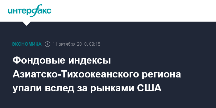 Москва. 11 октября. INTERFAX.RU - Все без исключения фондовые индексы стран Азиатско-Тихоокеанского региона (АТР) падают в четверг после обвала рынков акций в США накануне.