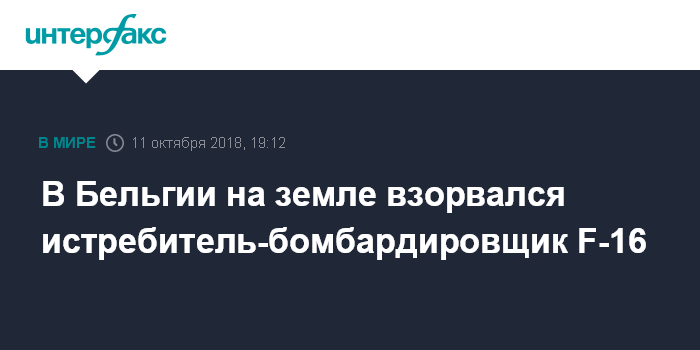 Москва. 11 октября. INTERFAX.RU - Истребитель-бомбардировщик F-16 был полностью разрушен в четверг во второй половине дня взрывом во время наземного обслуживания на базе ВВС во Флоренне в Бельгии.